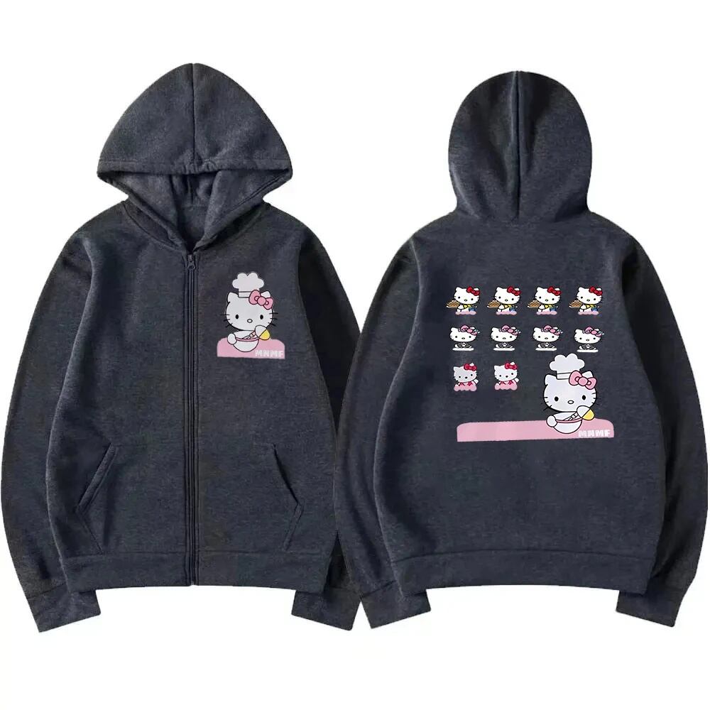 女性のかわいいプリントパーカー、サンリオアニメ、ハローキティ漫画、y2k、ルーズスウェットシャツ、スウィートカーディガンウェア、韓国の学生、ファッション パーカー ジャージ y2k T240908171336_09 | OPEN-korea