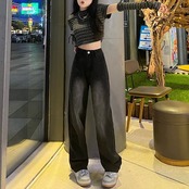 ワイドパンツ新作 トレート ジーンズ レディースハイウエスト デニム 着痩せ ワイドパンツ ドレープ感 ロングズボン