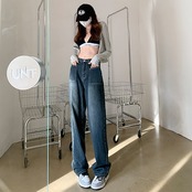 デニムボトムス ジーンズ ワイドパンツ レディースレトロ 着痩せ ジーンズ ロングパンツ レディース服 デザイン感 ハイウェストゆったり 長ズボン ロングズボン ワイドパンツモップパンツ | OPEN-korea