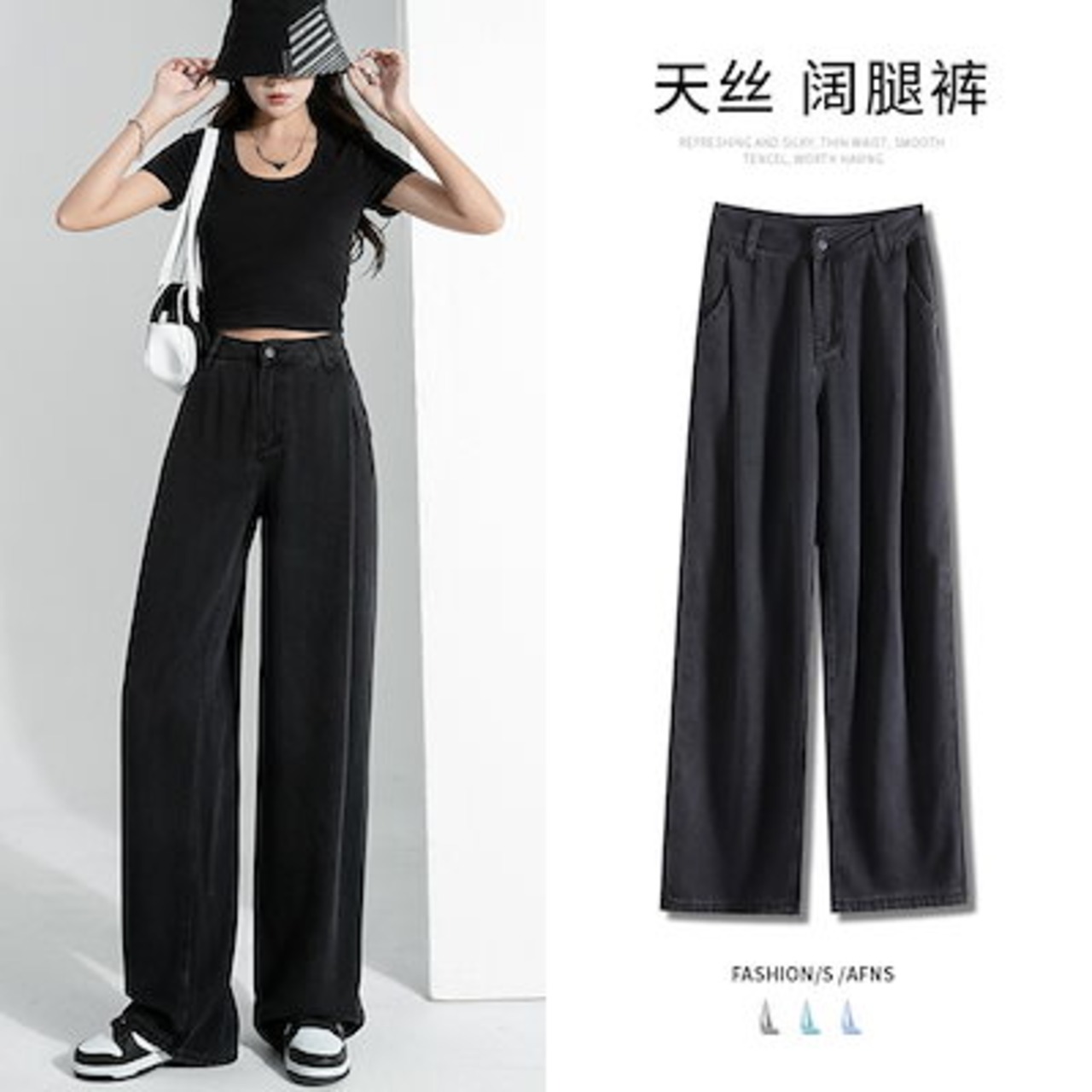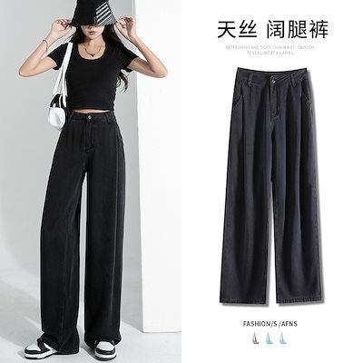 デニムボトムス ジーンズ ワイドパンツ レディース ブラック 夏 モップパンツ 着痩せ ジーンズ ロングパンツ レディース服 デザイン感 ハイウェストゆったり 長ズボン ロングズボン ワイドパンツ | OPEN-korea