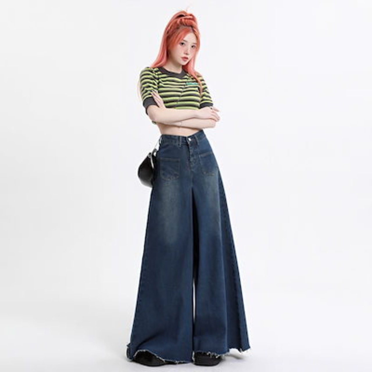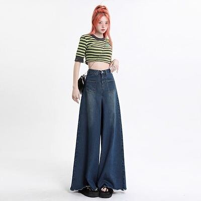 デニムパンツ【2枚購入で 2oo円OFF!】2024新作 おしゃれ 流行り ハイウエスト ワイドパンツ ジーンズ レディース レトロ ゆったり ズボン スラックスパンツ デニム スキニーパンツひんや | OPEN-korea