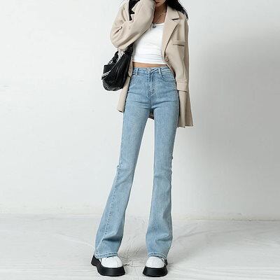 秋 冬 ロングパンツ デニムパンツ フレアパンツ 気質 ワイドパンツ レディース スリミング 着痩せ ストレート ハイウエスト