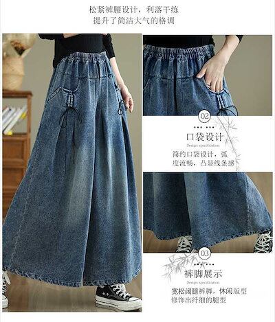 「ファットガール」 2024秋冬新品 デニムパンツ 大きいサイズ 体型カバー レディース ジーンズ ゴム ワイドパンツ ロングパンツ ハイウエスト メガ割